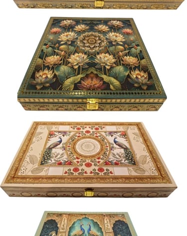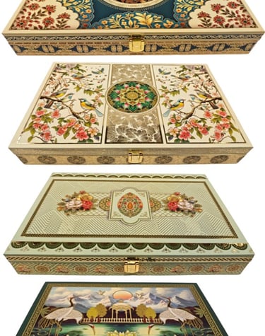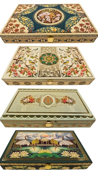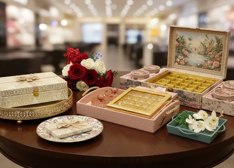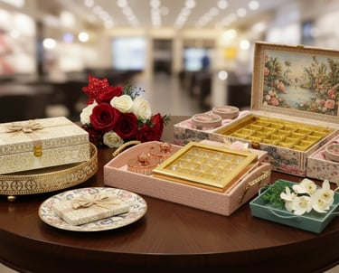 We are an innovative gifting company based in Dubai, specializing in stylish and customizable designer boxes, plates, trays, and flowers for every occasion.